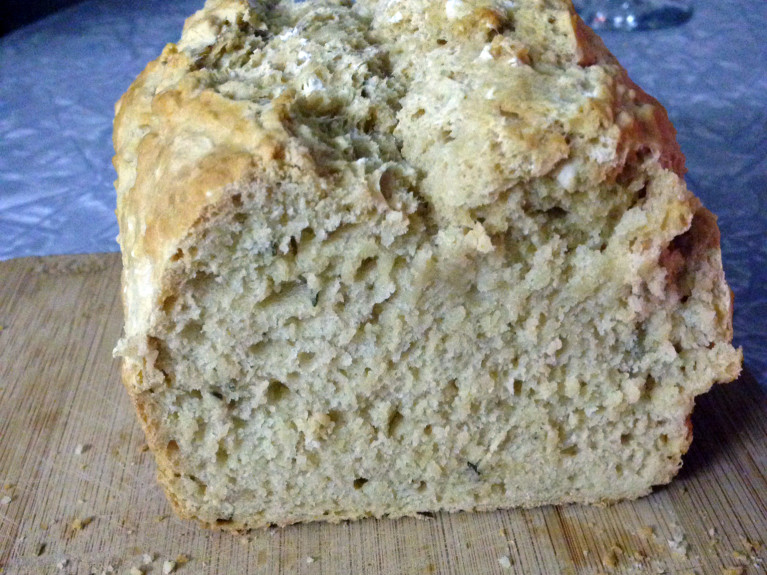 • Bake the bread for 45 to 50 minutes, until a toothpick inserted about 1/2″ into the top of the loaf comes out clean, or with a few moist crumbs clinging to it