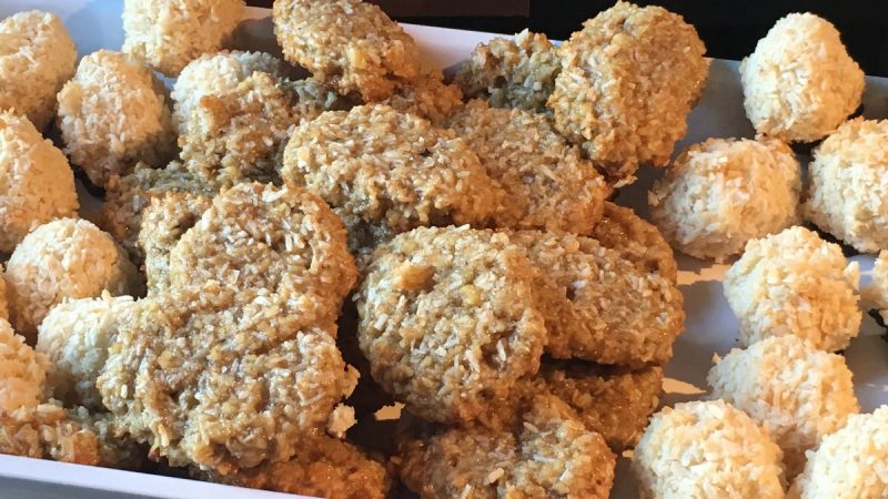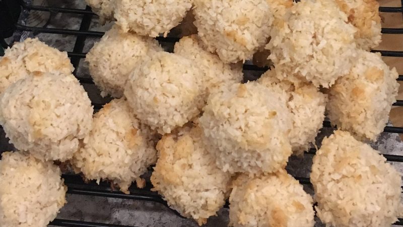 • Beat eggs white, sugar and vanilla extract to foam. Fold in the coconut, making sure the coconut is evenly moistened.